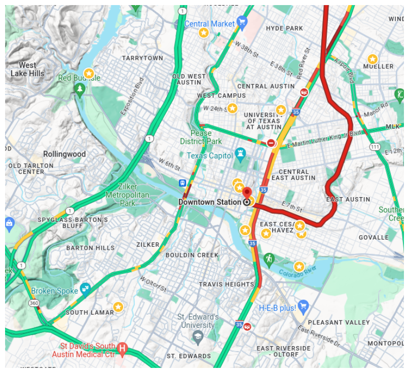 However the only operational train-line (not including inter-state) to downtown ran through East Cesar Chavez to East Austin and further north.