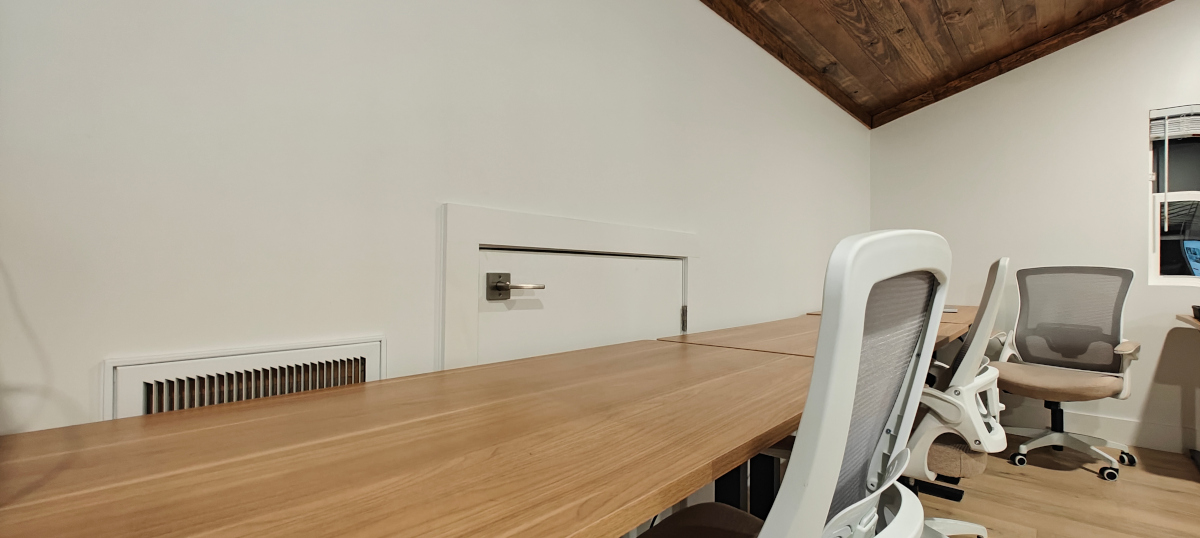 We have a large shared kitchen as well as an coworking office and a wrap around deck. Our coworking office is still under development, we are installing new furniture and office amenities like whiteboards and printers.